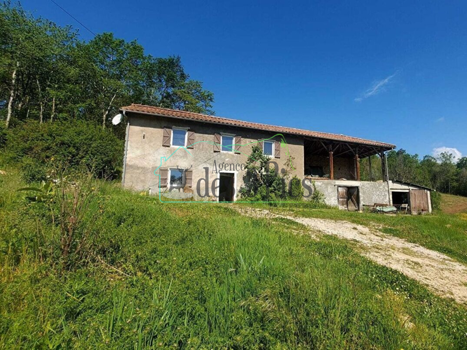 Dans la commune de Fabas, l'agence des 3 pics vous propose cette belle bâtisse d'environ 80m2 sur 2 niveaux à finir de rénover, grange attenante de 60m2, garage de 20m2, hangar de 80m2, 2 hectares de terrain dont 5000m2 attenant et mobil-home T4 de 37m2.
