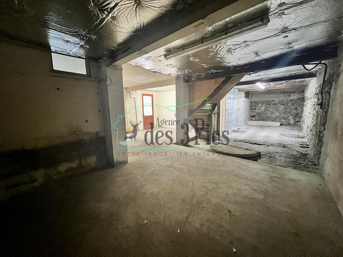En R-1 vous avez 80m² à rénover, divisé en trois parties : un espace de 50m², une pièce de 20m², et un espace salle de bain avec WC. Cet espace peut être aménagé selon vos envies avec un accès sur l'arrière du terrain.