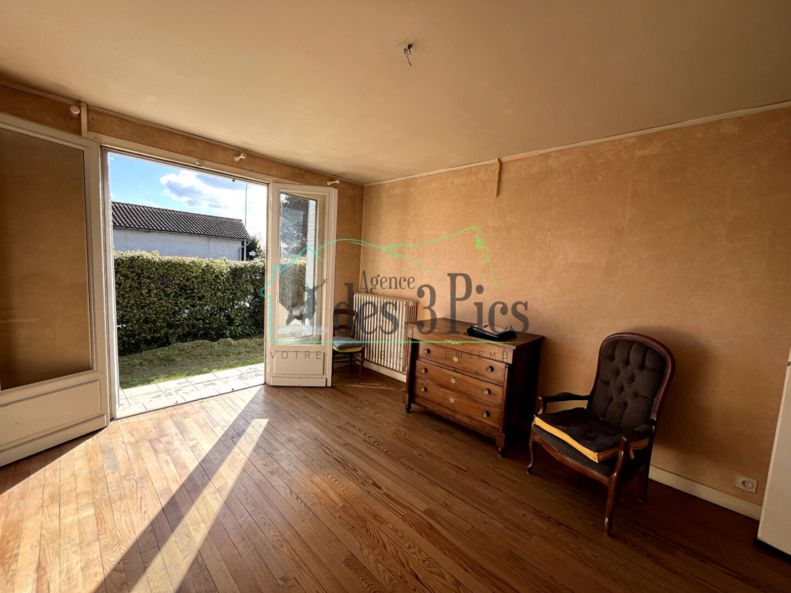 Idéalement bien situé, cette maison de plain-pied vous offre un bel espace de vie avec une baie vitrée donnant sur la terrasse pour profiter du soleil du matin. L'insert bois chauffera rapidement la pièce de vie. La cuisine est séparée et meublée.