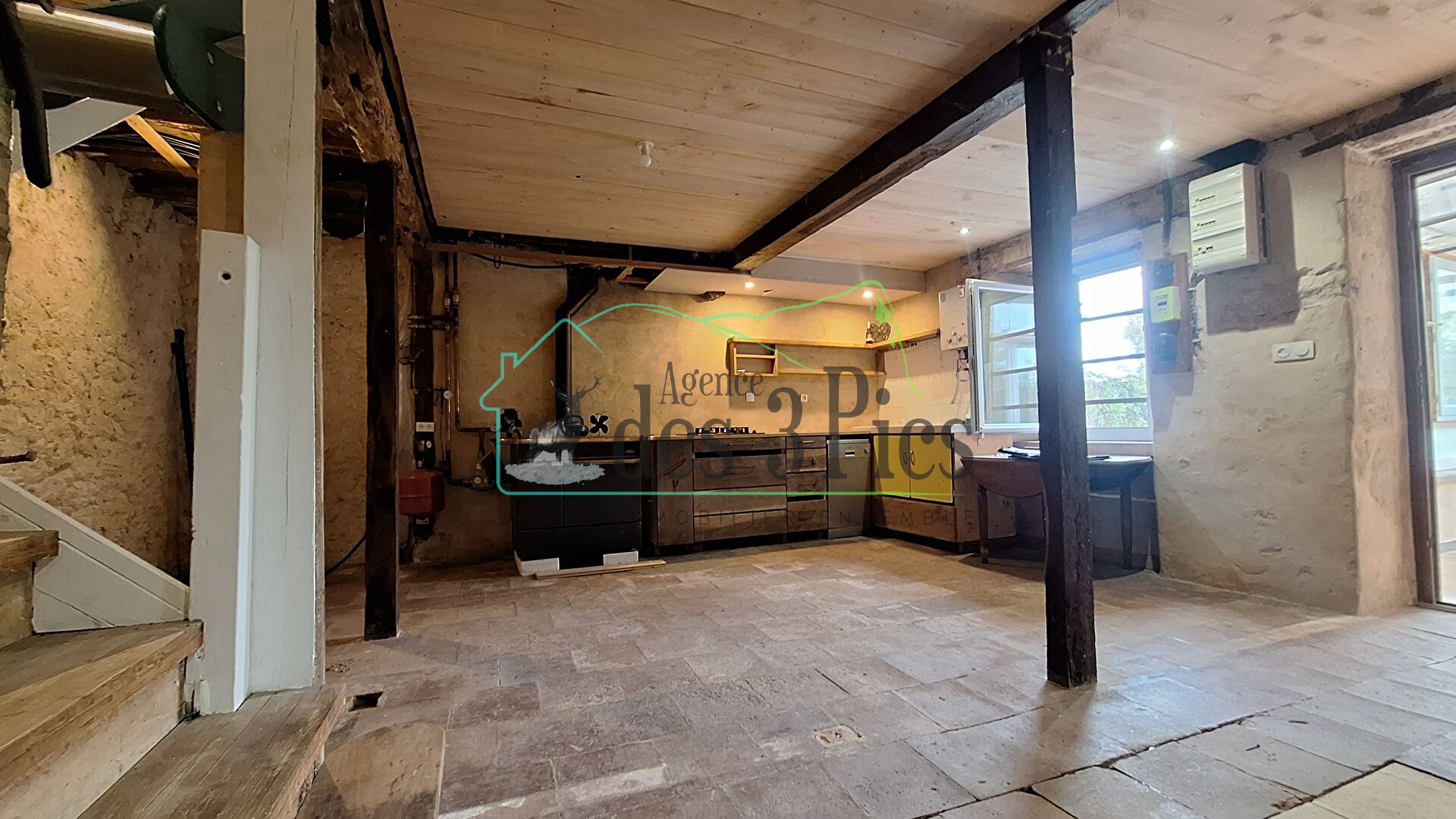 L'agence des 3 pics vous propose une maison T4 de 137 m2 en cours de rénovation avec plus de 180 m2 de dépendances et 15000 m2 de terrain attenant et non attenant.